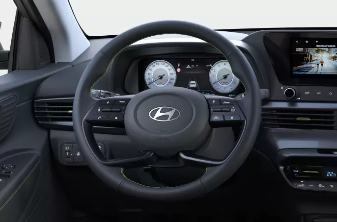 Un element specific de design il reprezinta liniile orizontale, care acopera plansa de bord, sporind eleganta habitaclului. Designul portierelor integreaza liniile plansei de bord, fiind inspirate din forme regasite in natura. De asemenea, clientii noului i20 se pot bucura de o noua tehnologie pentru iluminarea ambientala.