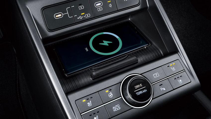 Conducatorul auto si pasagerii au acces la doua porturi USB de tip C fata/ spate (dintre care unul pentru date), dar si la un sistem de incarcare wireless, respectiv o priza frontala de 12 V.