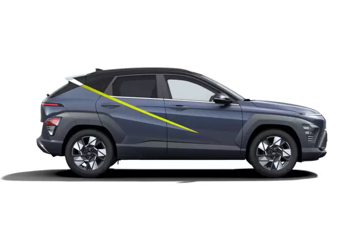 Dezvoltarea noului KONA a inceput cu varianta electrica, proces care a generat un exterior futurist, specific EV.