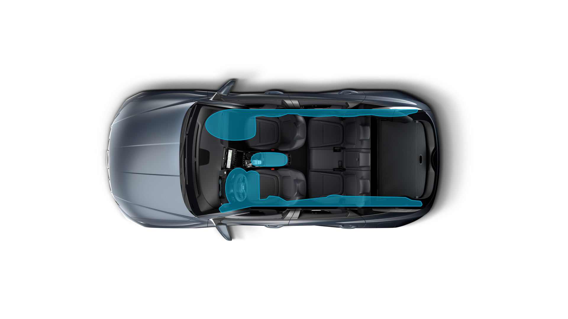 Sistemul include un nou airbag pentru spatiul dintre conducatorul auto si pasagerul din dreapta, o caracteristica unica in cadrul acestui segment.