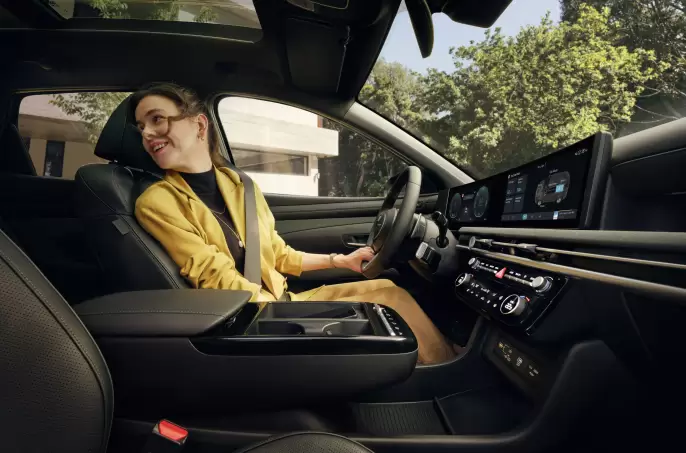Tucson PHEV include SmartSense, Bluelink®, actualizări OTA, climatizare dual-zone, ecran de 10,25”, transmisie automată și moduri multiple de condus.